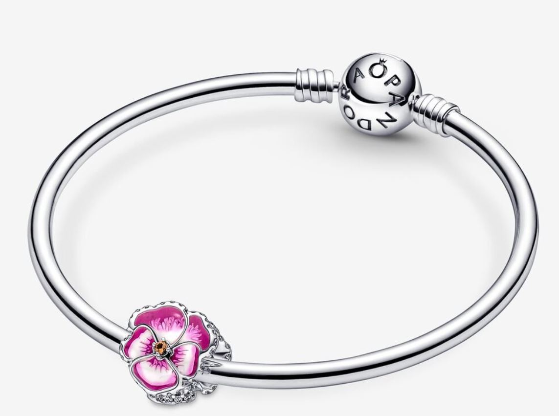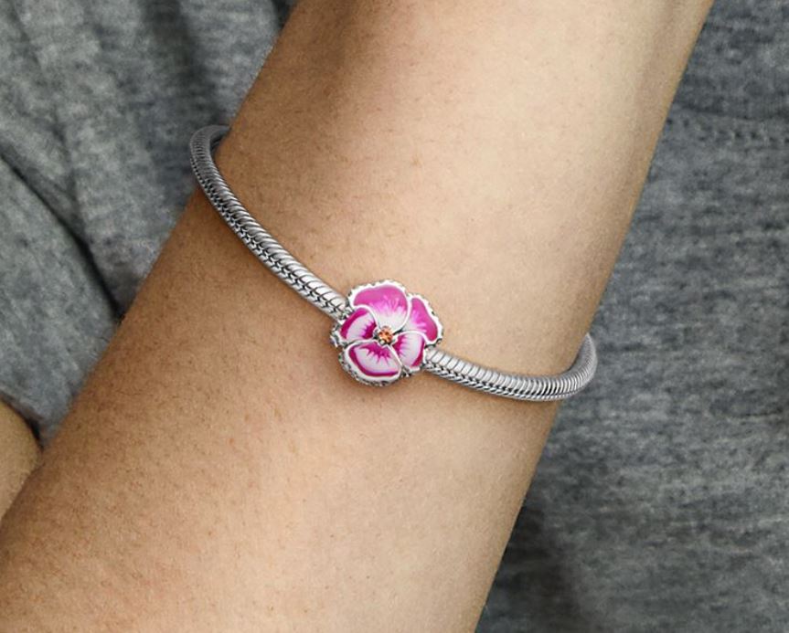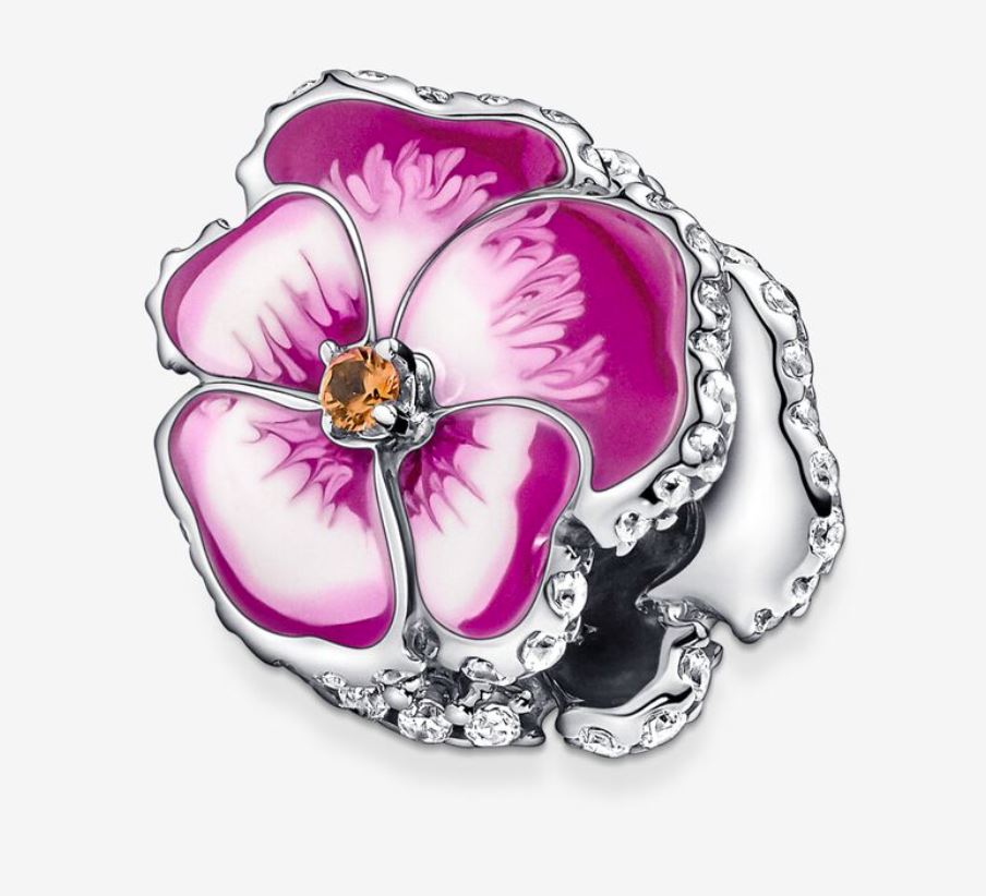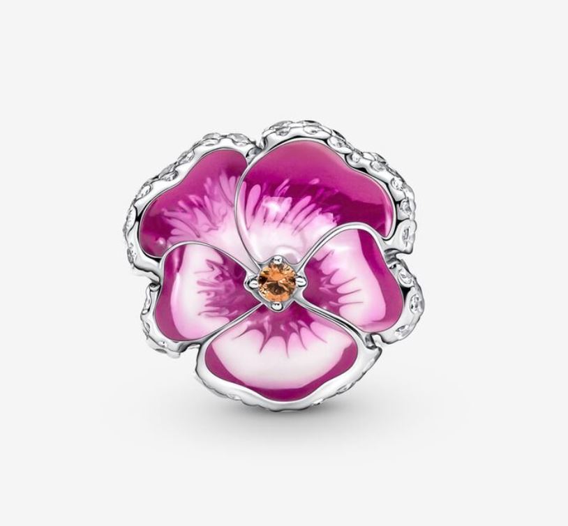 Presentförpackning ingår alltid!Sätt färg på våren med vår blommande berlock. Den pryds av glittrande kubisk zirkonia och handmålad emalj som gör varje blomma helt unik. Den senaste blomman i vår trädgård: penséer symboliserar kärlek i alla dess former. Bär den som en påminnelse om alla dina nära och kära i ditt liv och styla den med andra smycken från vår kollektion av trosor för en enhetlig look.