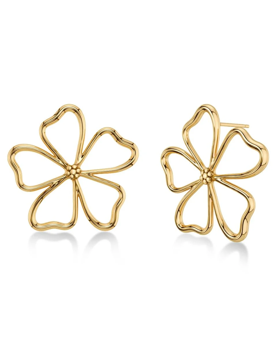 Presentförpackning ingår alltid!De stiliserade blomstren i lekfulla Alba andas sommarsol mot fräknig hy. De större studsen i 14K guldplätering blir ett lekfullt statement och är fina att matcha med den överdimensionerade ringen i samma serie.