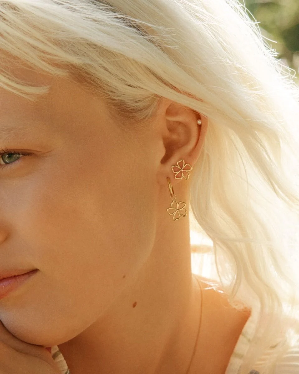 Presentförpackning ingår alltid!De stiliserade blomstren i lekfulla Alba andas sommarsol mot fräknig hy. De mindre studsen i 14K guldplätering är söta, och fina att matcha med andra favoritörhängen för den som har flera hål, och seriens nättare armband och ring.