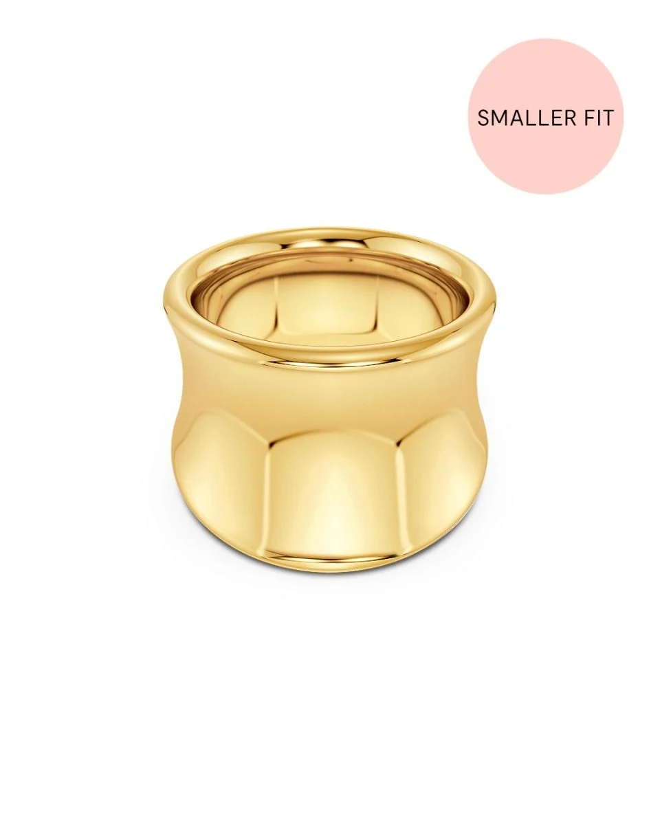 Topparna och dalarna som upprepar sig som en rytm i mönstret på en bambukäpp är inspirationen till uttrycksfulla Cane. Delarna är härligt lätta trots de svällande formerna. Statementringen har en mjuk och högpolerad finish med så kallad comfort fit för att sitta extra bekvämt på fingret. Stylas med fördel med någon av seriens övriga delar. Här i 14K guldplätering.