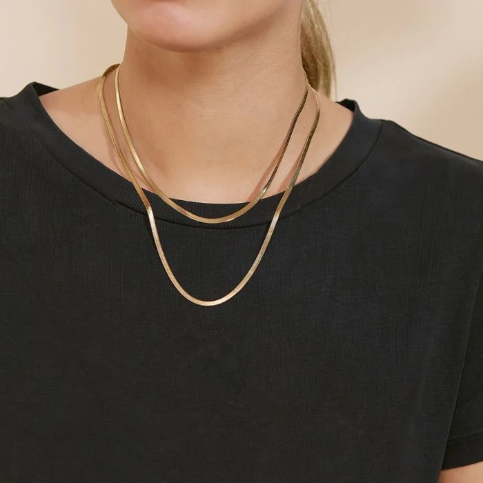 Chain Herringbone är en klassisk platt tät kedja som här ses i blank 14K guldplätering.