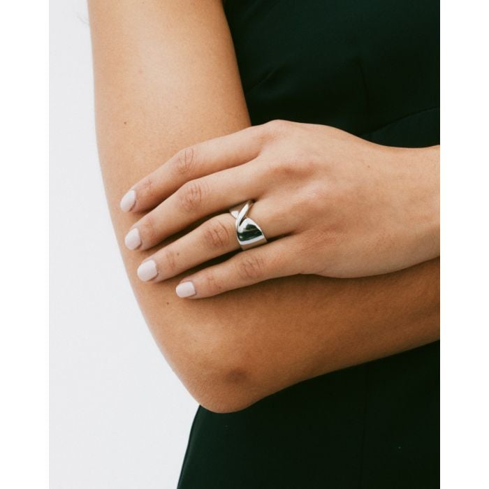 Lekfulla serien Nuvole är inspirerad av härliga, ändlösa italienska middagsbjudningar och är som gjord för party. Den stiliserade twisten har en väldigt lyxig finish. Här i en lättburen och läcker statementring med mjuka kanter och klassisk look i blankt rostfritt stål. Kombinera gärna med de stora örhängena eller statementhalsbandet i samma serie.