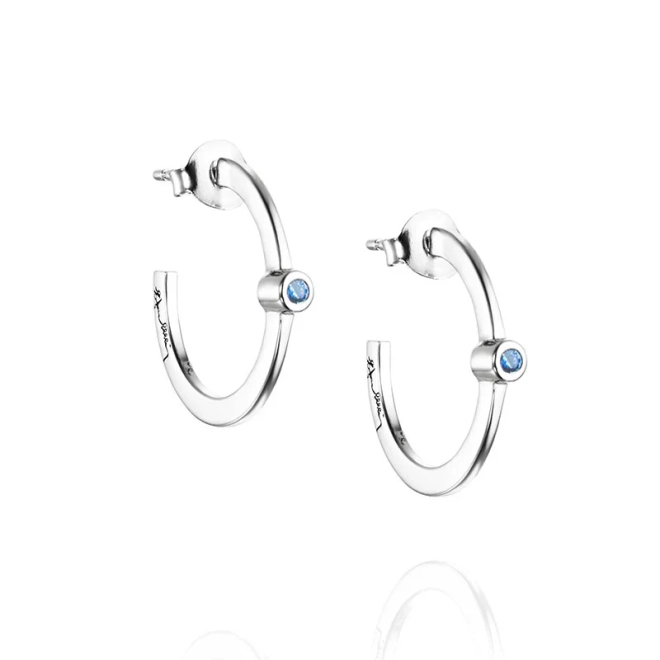 Hoops i återvunnet 925 sterlingsilver med en blå topas. Matcha med fler smycken ur kollektionen Micro Blink.