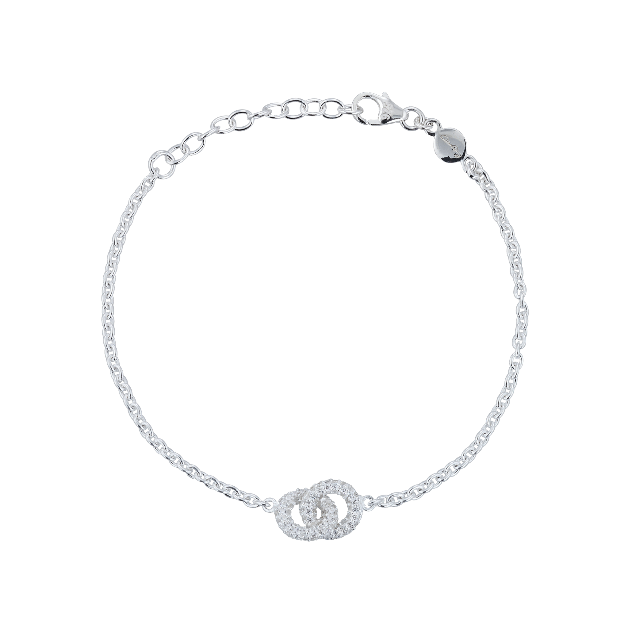 En av Gynnings mest eftertraktade favoriter, nu i en ny glittersprakande version – the knot sparkling mini! Elegant armband med två små sammanbundna ringar dekorerade med cubic zirconia.