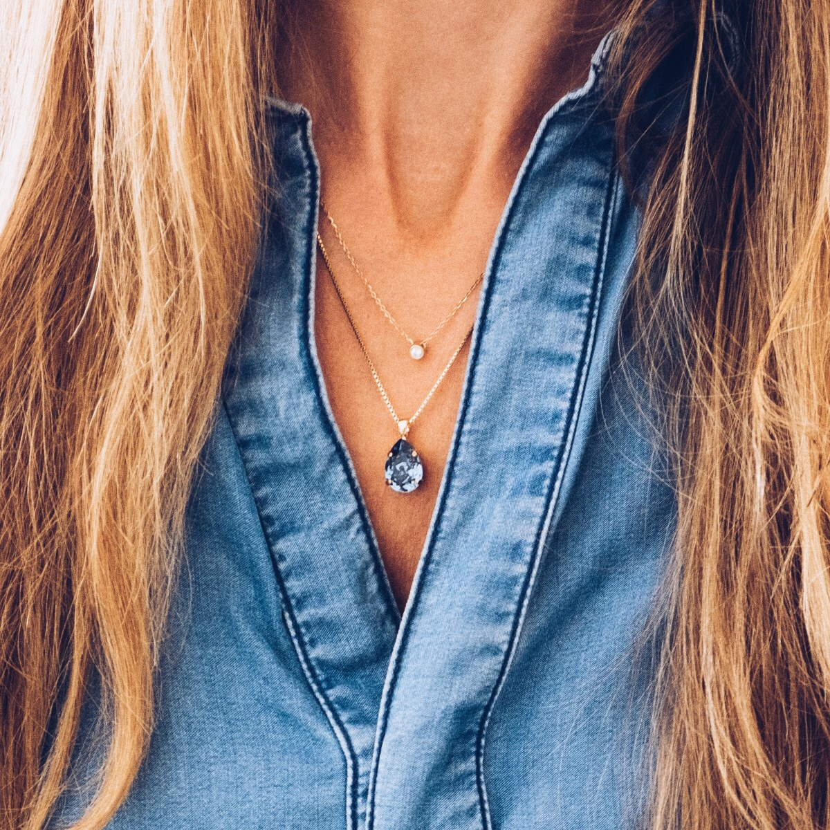 Alla smycken är traditionellt handgjorda i verkstaden med de finaste materialen och olika detaljer som Swarovski kristaller, halvädelstenar, pärlor, cabochons och glasstenar. Metallbasen vi använder är nickelfri mässing och plätering av 18K guld eller rodium.