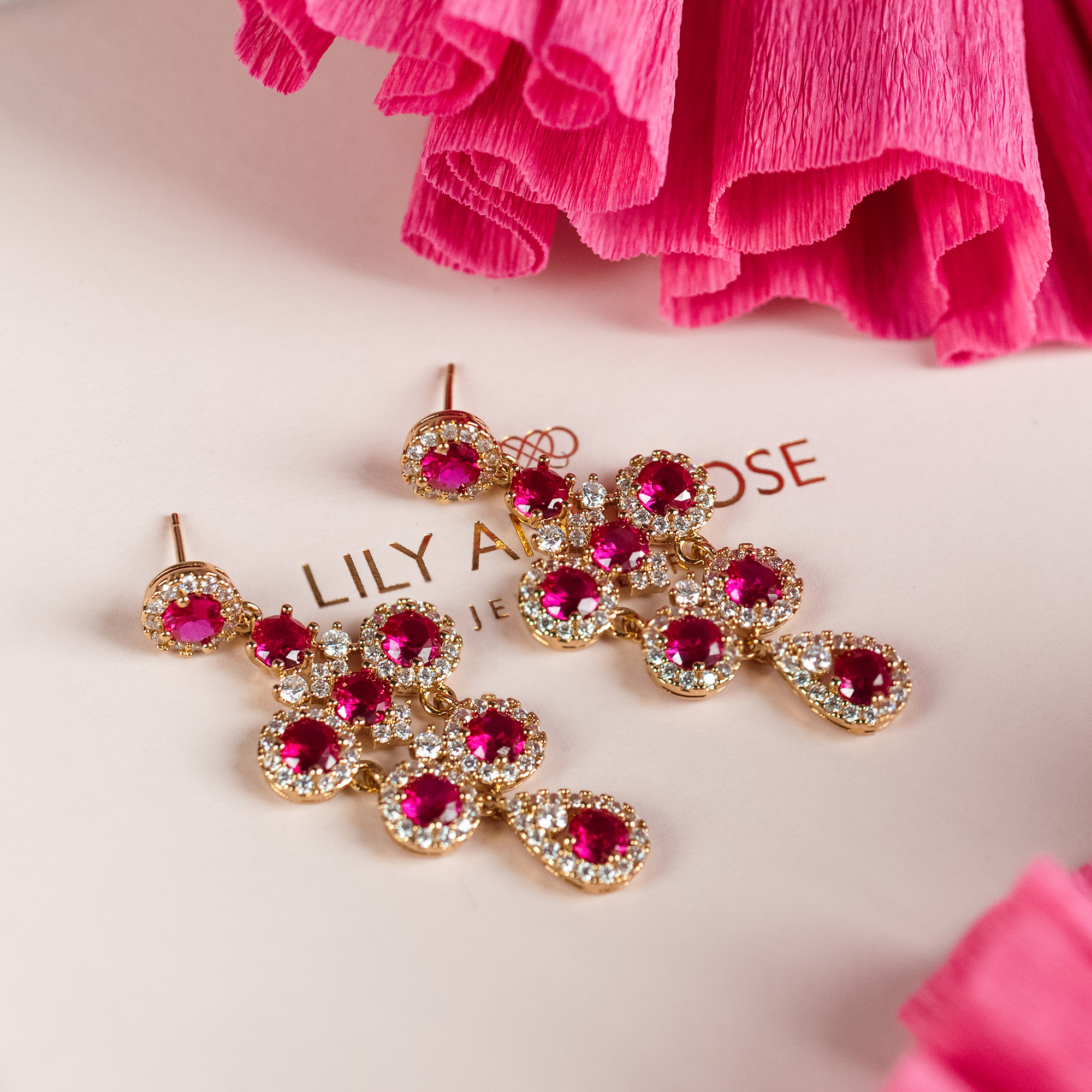 Lily And Rose “Miss Ophelia earrings – Pink ruby” – Örhängen