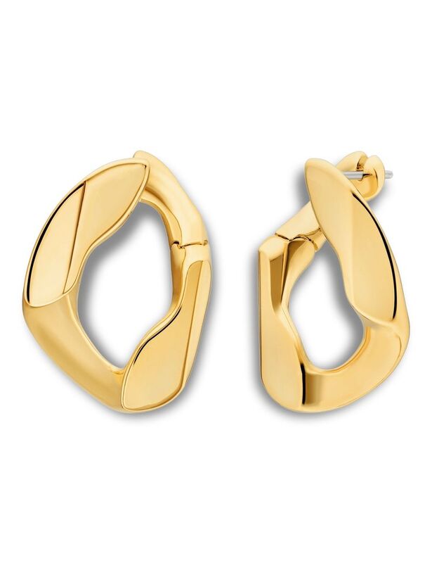 Dessa örhängen med organiska länkar har den perfekta storleken för att ta dig från dag till natt, vilket gör dem till den ultimata moderna accessoaren. Dessa utsökta örhängen, tillverkade i 14K guldpläterad mässing, har en stolpknäppning.