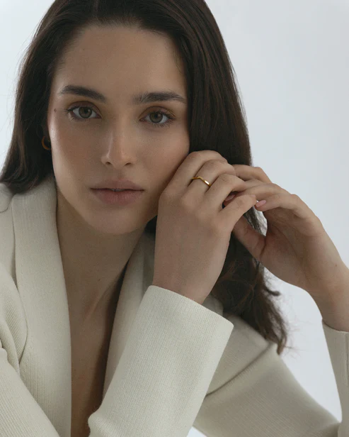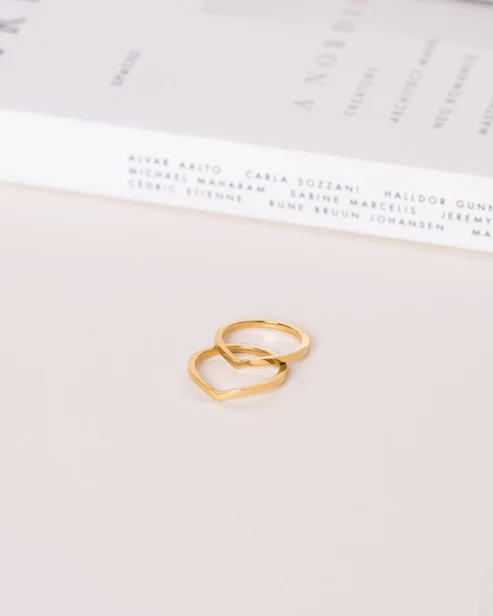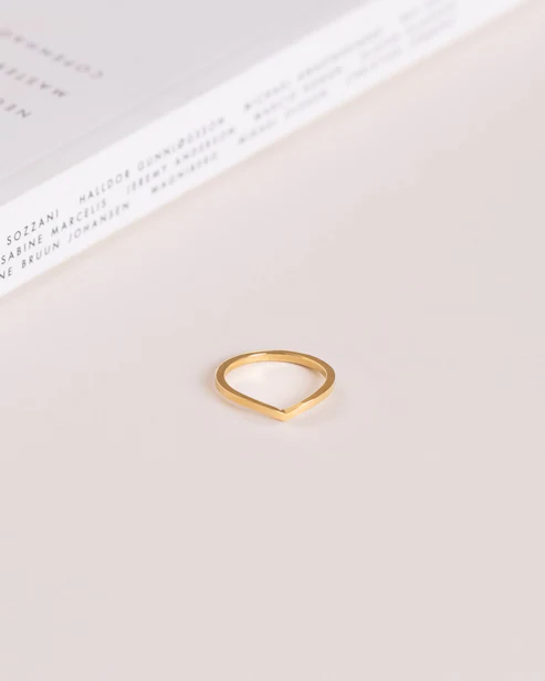 Honest Ring är en tunn och stilren ring med en V-formad design. Tillverkad i massivt rostfritt stål med en slitstark 18K guld PVD-plätering, vilket gör den vattentålig och hållbar. Bär den varje dag – bada, duscha och träna utan att oroa dig för att den tappar färg.