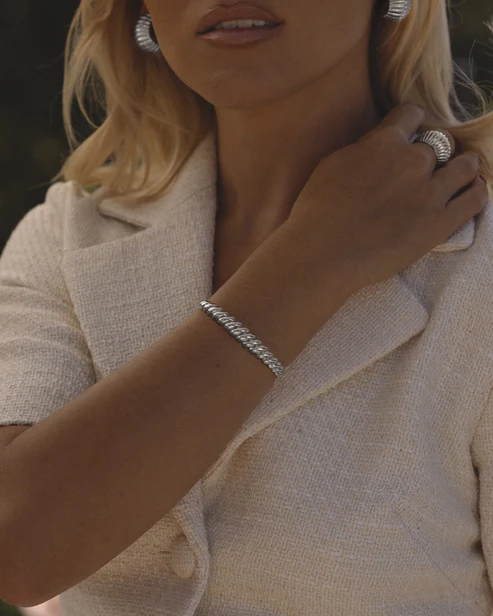 Ingrid Cuff är ett nätt armband med ett elegant räfflat mönster som kompletterar hela kollektionen på ett fantastiskt sätt. Det är det perfekta armbandet att enkelt matcha med örhängen och ringar från kollektionen för en sammanhängande och sofistikerad look. Släng på dig Ingrid Cuff och ge din outfit en omedelbar touch av tidlös elegans, oavsett tillfälle.