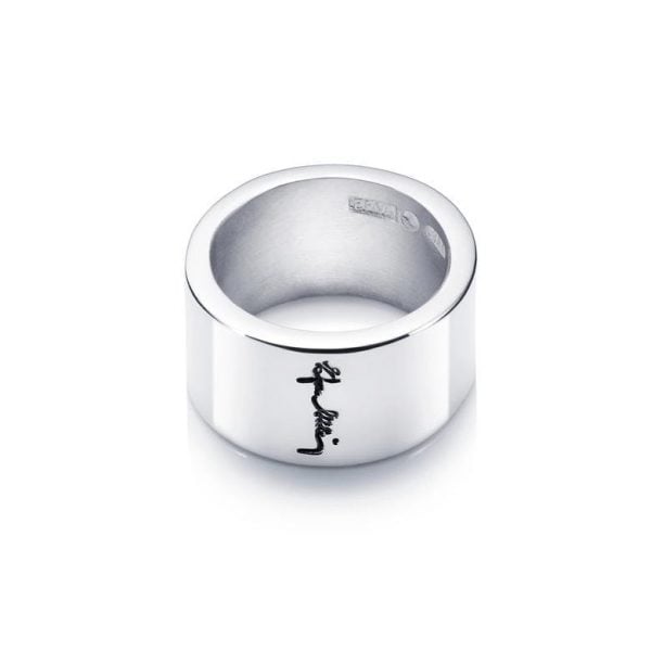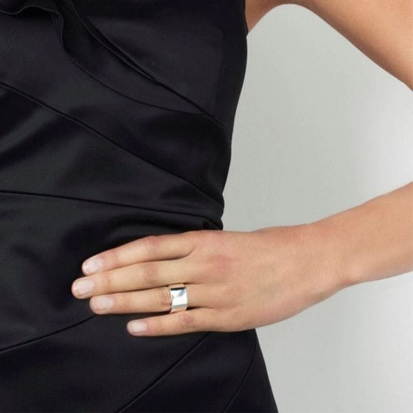Bred, slät ring i återvunnet sterlingsilver med signatur.