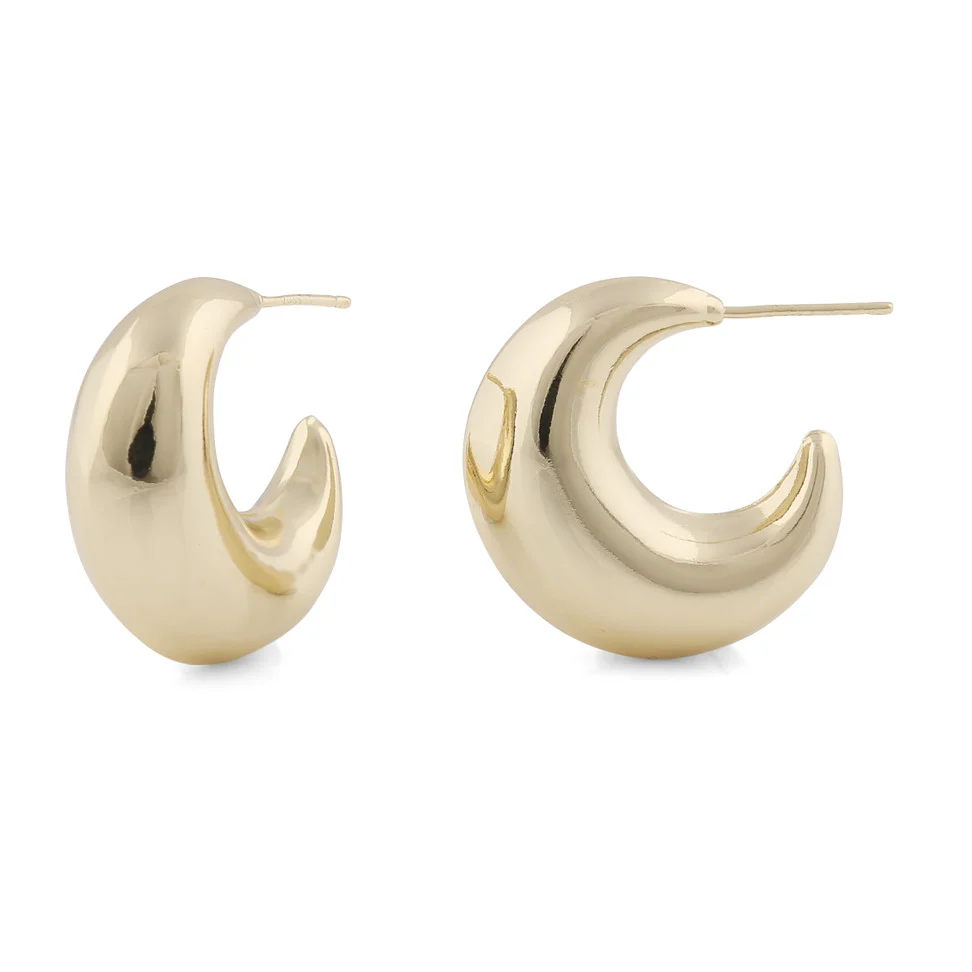 Runda och chunky örhängen med polerad, blank yta. Ihåliga för att inte tynga örat. Tillverkade i mässing med en 14k guldplätering.