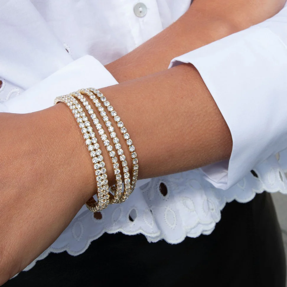 Siri Stone Bracelet är ett klassiskt tennisarmband tillverkat av mässing. Armbandet finns i guld- eller silverpläterad mässing och är dekorerat med cubic zirkonia-stenar i olika färger. Armbandet är 17cm i längd och 3mm i bredd. Armbandet är också nickeltestad och säker för personer med känslig hud.