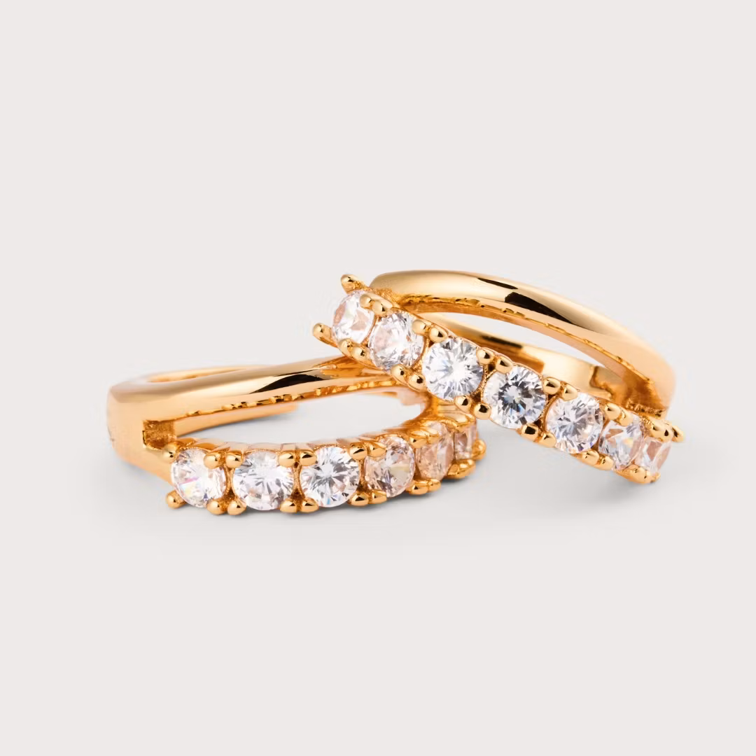 Dubbla hoops med handsatta zirkoner. Ett par örhängen som är med dig hela dagen.