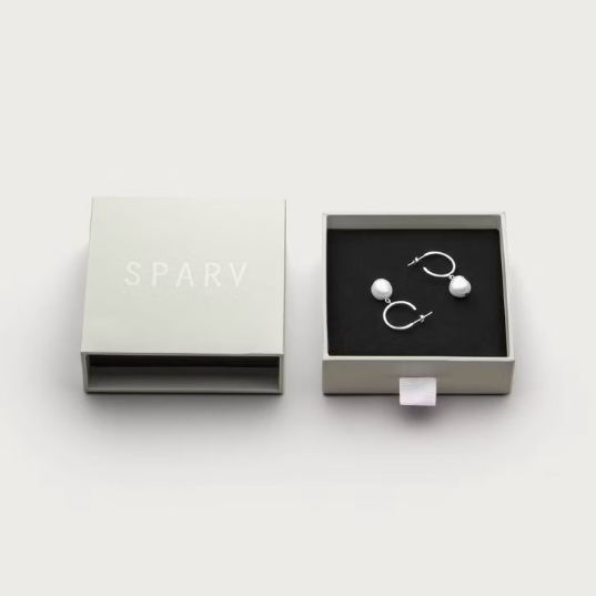 Pearly hoops säljs i par och kommer i två utföranden: guldplätering (18K) och silverpläterad mässing. Alla smycken är nickelfria och de guldpläterade smyckena har en extra tjock plätering av 18K som är gjord för att hålla över tid. Pearly hoops görs med naturliga sötvattenspärlor och varje pärla kan skilja sig åt något i form och storlek. Varsamt förpackade i askar av återvunnet och FSC märkt papper.