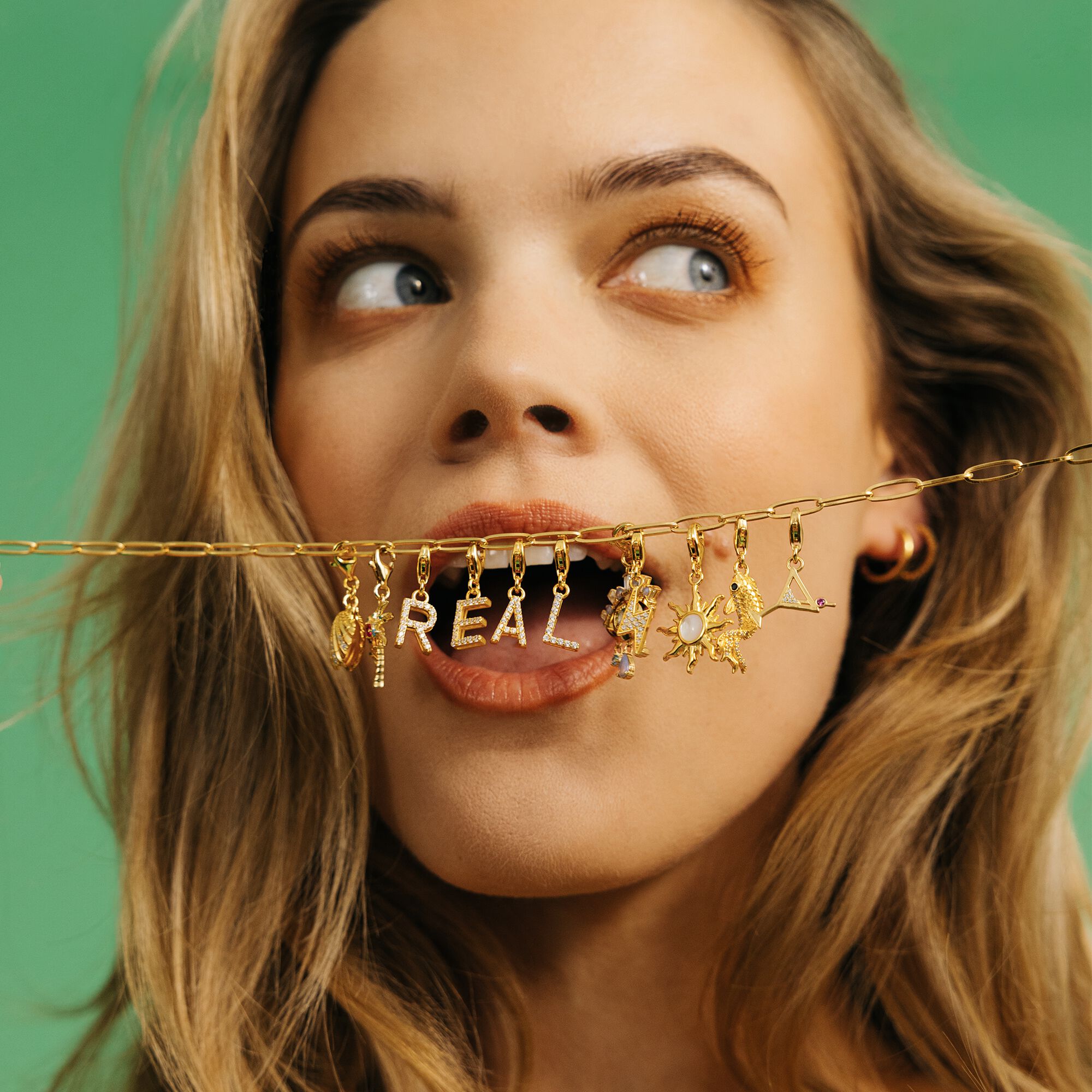 Gnistrande bokstav: Charmen i form av ett L är tillverkad av exklusivt 925 sterlingsilver och pryds av elegant plätering i 18 karat gult guld. Handplacerade, vita zirkoniastenar får den att stråla. Pavéfattningen ger smycket mycket intensiva färgskiftningar.